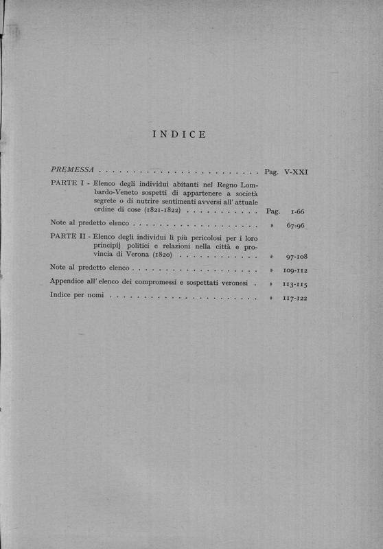 Elenchi di compromessi o sospettati politici : 1820-1822 . a cura di Annibale Alberti