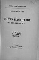 Gli studi Franco-Italiani nel primo quarto del sec. XX . Ferdinando Neri