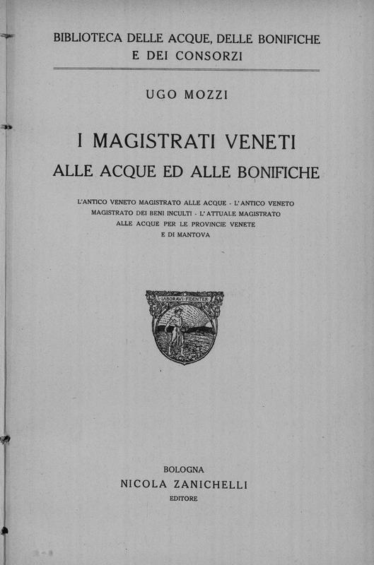 I Magistrati veneti alle acque ed alle bonifiche : l'antico veneto magistrato alle acque, l'antico veneto magistrato ai beni inculti, l'attuale magistrato alle acque per le provincie venete e di Mantova . Ugo Mozzi