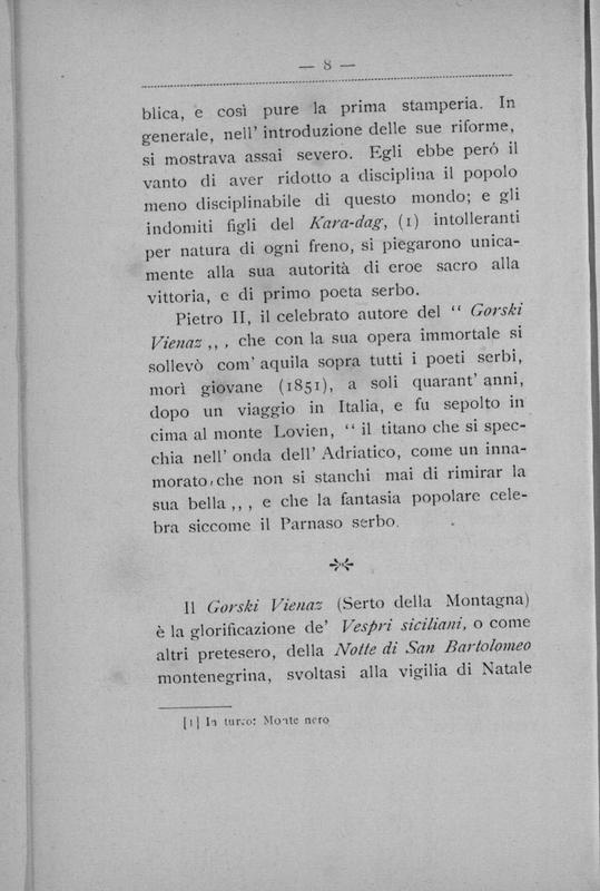 Il serto della montagna : quadro storico della fine del secolo 17. Pietro Petrovic Njegos