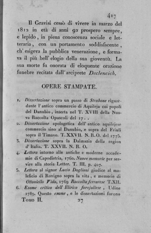 Biografia degli uomini distinti dell'Istria del canonico Pietro Stancovich . Tomo secondo