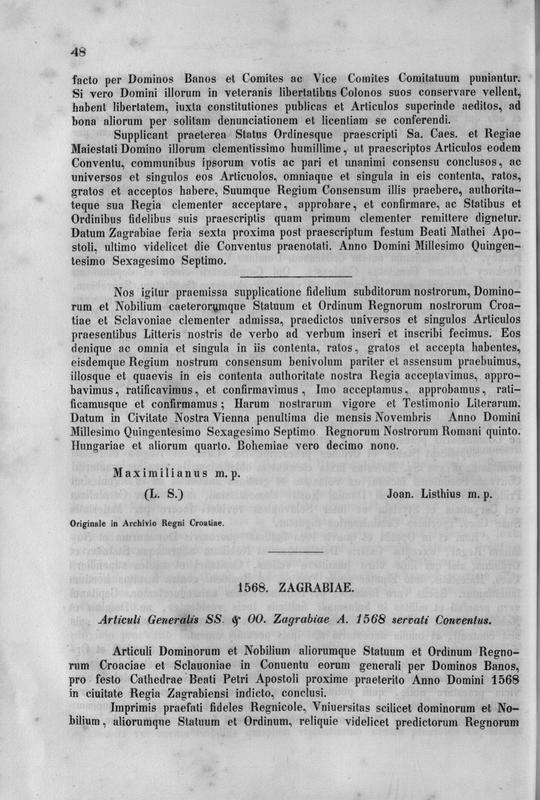Jura regni Croatiae, Dalmatiae et Slavoniae . edidit Joannes Kukuljevic aliter Bassani de Sacchi . Pars II