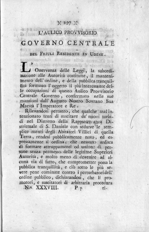 Nuova raccolta di tutte le carte pubbliche, leggi, e proclami stampate, ed esposte ne' luoghi piu' frequentati di Venezia e suo dipartimento dopo il felice ingresso dell'armi austriache di S.M. Imperatore, e Re nel Veneto Stato. Volume primo