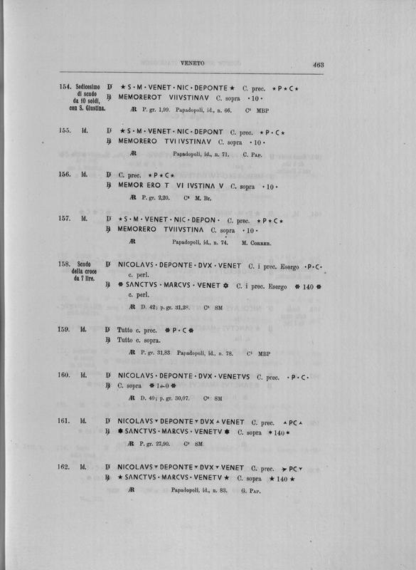 Corpus nummorum italicorum : primo tentativo di un catalogo generale delle monete medievali e moderne coniate in Italia o da italiani in altri paesi , 7: Veneto : Venezia. 1, Dalle origini a Marino Grimani