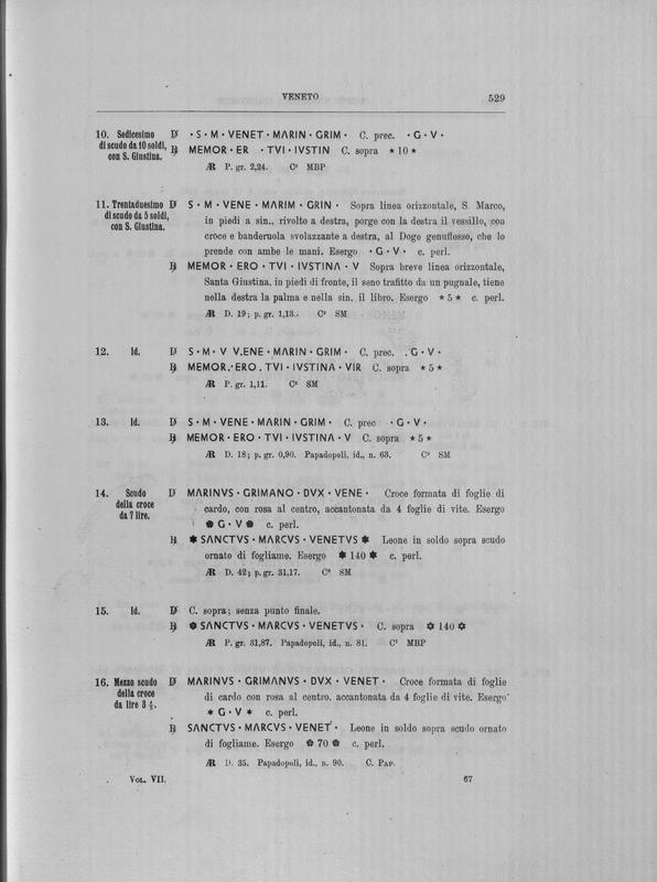 Corpus nummorum italicorum : primo tentativo di un catalogo generale delle monete medievali e moderne coniate in Italia o da italiani in altri paesi , 7: Veneto : Venezia. 1, Dalle origini a Marino Grimani