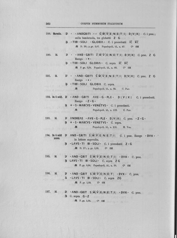 Corpus nummorum italicorum : primo tentativo di un catalogo generale delle monete medievali e moderne coniate in Italia o da italiani in altri paesi , 7: Veneto : Venezia. 1, Dalle origini a Marino Grimani