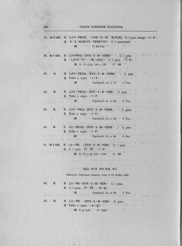 Corpus nummorum italicorum : primo tentativo di un catalogo generale delle monete medievali e moderne coniate in Italia o da italiani in altri paesi , 7: Veneto : Venezia. 1, Dalle origini a Marino Grimani