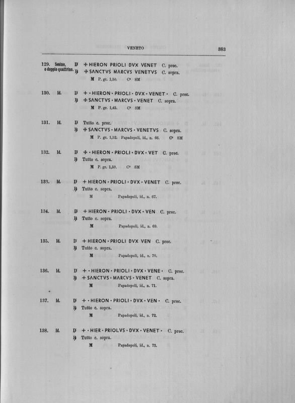 Corpus nummorum italicorum : primo tentativo di un catalogo generale delle monete medievali e moderne coniate in Italia o da italiani in altri paesi , 7: Veneto : Venezia. 1, Dalle origini a Marino Grimani