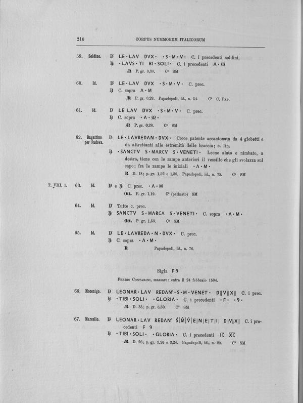 Corpus nummorum italicorum : primo tentativo di un catalogo generale delle monete medievali e moderne coniate in Italia o da italiani in altri paesi , 7: Veneto : Venezia. 1, Dalle origini a Marino Grimani