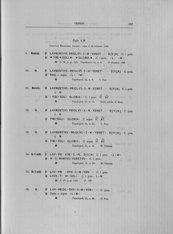 Corpus nummorum italicorum : primo tentativo di un catalogo generale delle monete medievali e moderne coniate in Italia o da italiani in altri paesi , 7: Veneto : Venezia. 1, Dalle origini a Marino Grimani