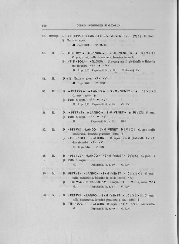 Corpus nummorum italicorum : primo tentativo di un catalogo generale delle monete medievali e moderne coniate in Italia o da italiani in altri paesi , 7: Veneto : Venezia. 1, Dalle origini a Marino Grimani