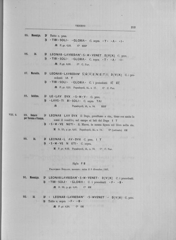 Corpus nummorum italicorum : primo tentativo di un catalogo generale delle monete medievali e moderne coniate in Italia o da italiani in altri paesi , 7: Veneto : Venezia. 1, Dalle origini a Marino Grimani