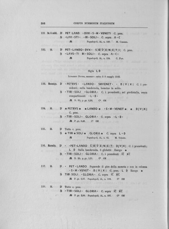 Corpus nummorum italicorum : primo tentativo di un catalogo generale delle monete medievali e moderne coniate in Italia o da italiani in altri paesi , 7: Veneto : Venezia. 1, Dalle origini a Marino Grimani