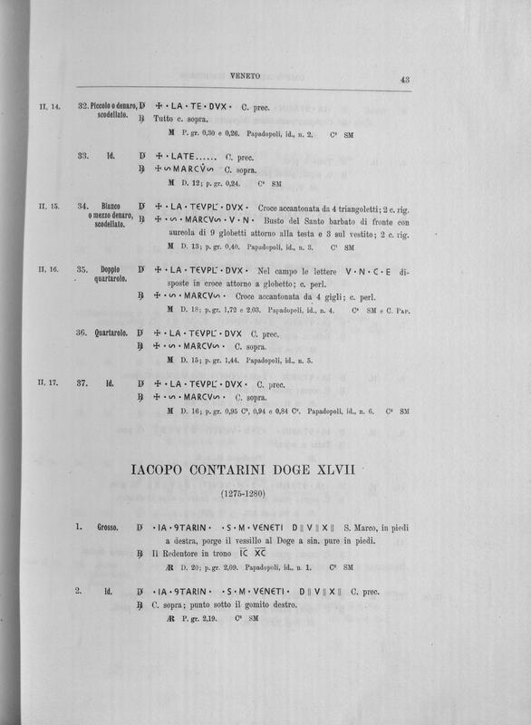 Corpus nummorum italicorum : primo tentativo di un catalogo generale delle monete medievali e moderne coniate in Italia o da italiani in altri paesi , 7: Veneto : Venezia. 1, Dalle origini a Marino Grimani