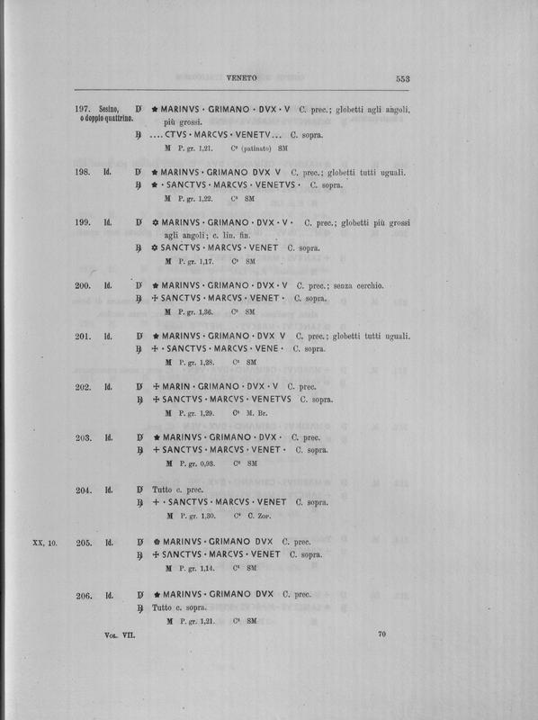 Corpus nummorum italicorum : primo tentativo di un catalogo generale delle monete medievali e moderne coniate in Italia o da italiani in altri paesi , 7: Veneto : Venezia. 1, Dalle origini a Marino Grimani