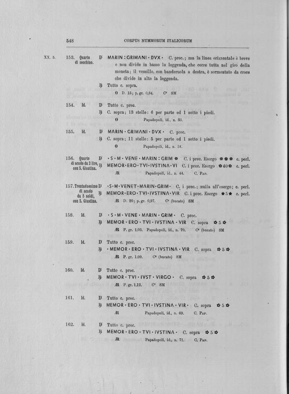 Corpus nummorum italicorum : primo tentativo di un catalogo generale delle monete medievali e moderne coniate in Italia o da italiani in altri paesi , 7: Veneto : Venezia. 1, Dalle origini a Marino Grimani