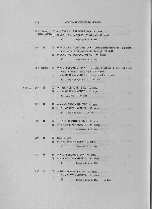 Corpus nummorum italicorum : primo tentativo di un catalogo generale delle monete medievali e moderne coniate in Italia o da italiani in altri paesi , 7: Veneto : Venezia. 1, Dalle origini a Marino Grimani