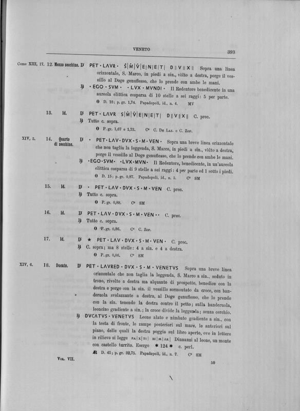 Corpus nummorum italicorum : primo tentativo di un catalogo generale delle monete medievali e moderne coniate in Italia o da italiani in altri paesi , 7: Veneto : Venezia. 1, Dalle origini a Marino Grimani