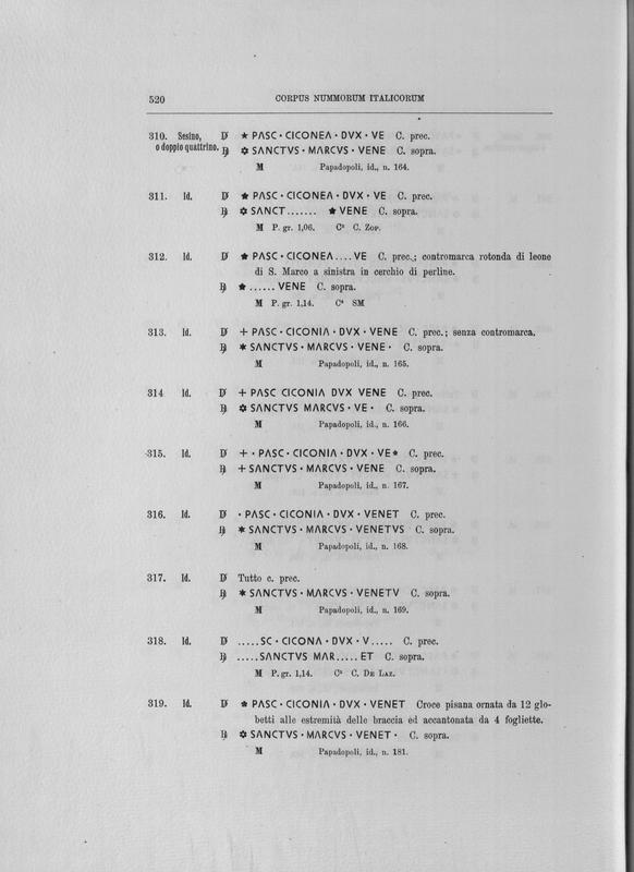 Corpus nummorum italicorum : primo tentativo di un catalogo generale delle monete medievali e moderne coniate in Italia o da italiani in altri paesi , 7: Veneto : Venezia. 1, Dalle origini a Marino Grimani