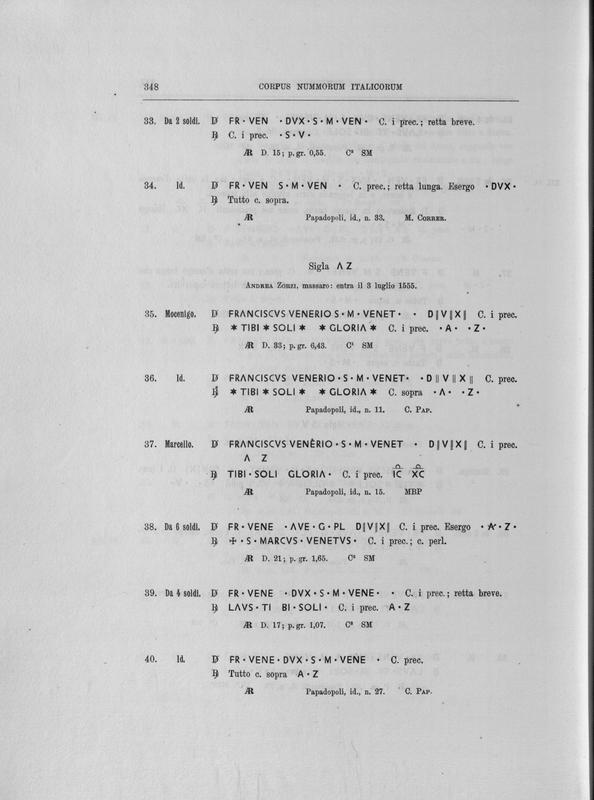 Corpus nummorum italicorum : primo tentativo di un catalogo generale delle monete medievali e moderne coniate in Italia o da italiani in altri paesi , 7: Veneto : Venezia. 1, Dalle origini a Marino Grimani