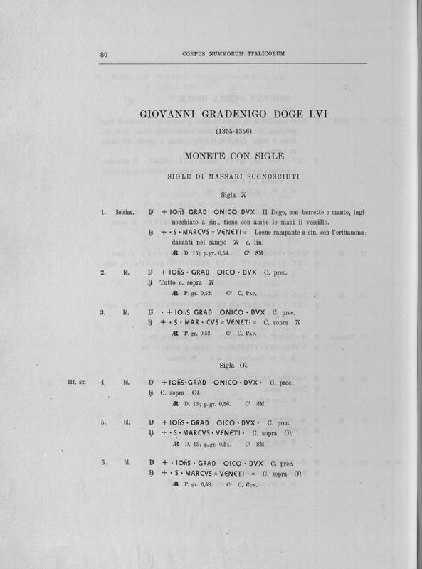Corpus nummorum italicorum : primo tentativo di un catalogo generale delle monete medievali e moderne coniate in Italia o da italiani in altri paesi , 7: Veneto : Venezia. 1, Dalle origini a Marino Grimani