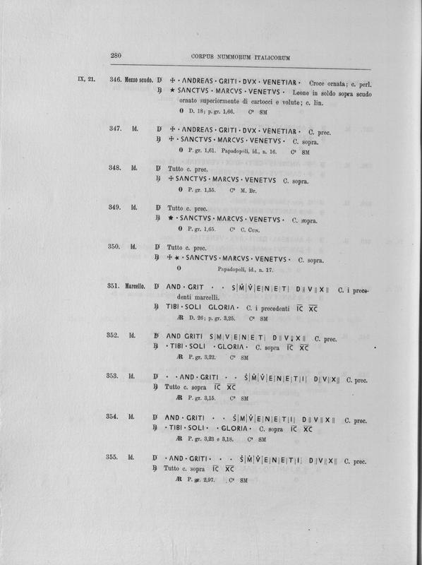 Corpus nummorum italicorum : primo tentativo di un catalogo generale delle monete medievali e moderne coniate in Italia o da italiani in altri paesi , 7: Veneto : Venezia. 1, Dalle origini a Marino Grimani