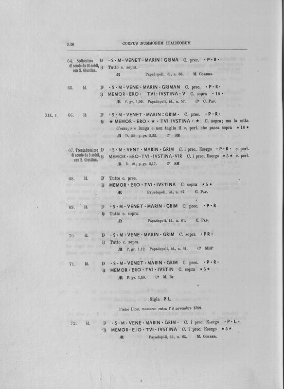 Corpus nummorum italicorum : primo tentativo di un catalogo generale delle monete medievali e moderne coniate in Italia o da italiani in altri paesi , 7: Veneto : Venezia. 1, Dalle origini a Marino Grimani