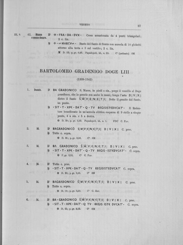Corpus nummorum italicorum : primo tentativo di un catalogo generale delle monete medievali e moderne coniate in Italia o da italiani in altri paesi , 7: Veneto : Venezia. 1, Dalle origini a Marino Grimani