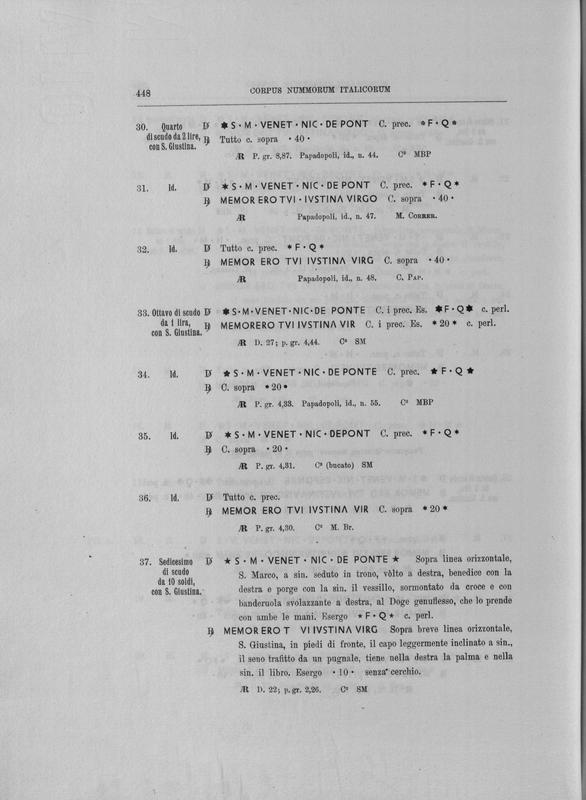 Corpus nummorum italicorum : primo tentativo di un catalogo generale delle monete medievali e moderne coniate in Italia o da italiani in altri paesi , 7: Veneto : Venezia. 1, Dalle origini a Marino Grimani