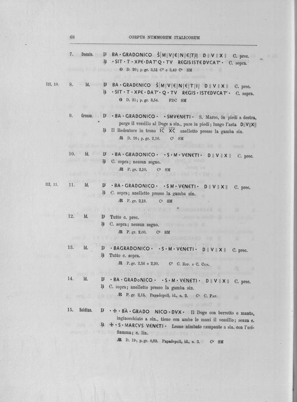 Corpus nummorum italicorum : primo tentativo di un catalogo generale delle monete medievali e moderne coniate in Italia o da italiani in altri paesi , 7: Veneto : Venezia. 1, Dalle origini a Marino Grimani