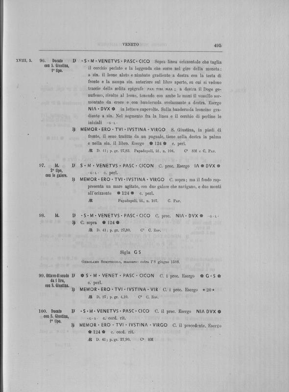 Corpus nummorum italicorum : primo tentativo di un catalogo generale delle monete medievali e moderne coniate in Italia o da italiani in altri paesi , 7: Veneto : Venezia. 1, Dalle origini a Marino Grimani