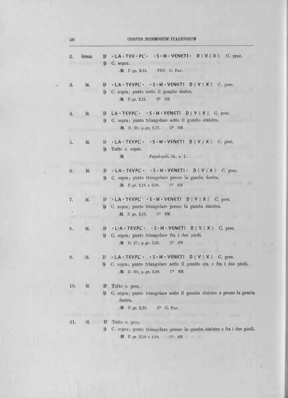 Corpus nummorum italicorum : primo tentativo di un catalogo generale delle monete medievali e moderne coniate in Italia o da italiani in altri paesi , 7: Veneto : Venezia. 1, Dalle origini a Marino Grimani