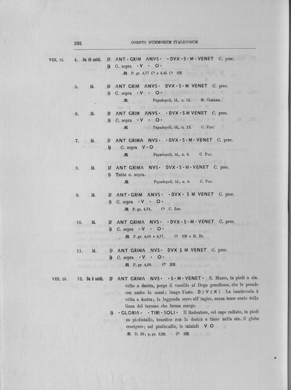Corpus nummorum italicorum : primo tentativo di un catalogo generale delle monete medievali e moderne coniate in Italia o da italiani in altri paesi , 7: Veneto : Venezia. 1, Dalle origini a Marino Grimani