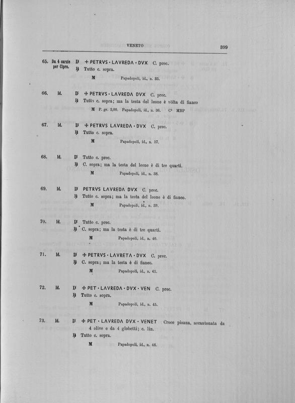 Corpus nummorum italicorum : primo tentativo di un catalogo generale delle monete medievali e moderne coniate in Italia o da italiani in altri paesi , 7: Veneto : Venezia. 1, Dalle origini a Marino Grimani