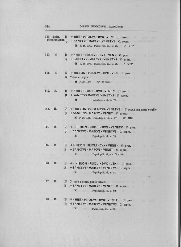 Corpus nummorum italicorum : primo tentativo di un catalogo generale delle monete medievali e moderne coniate in Italia o da italiani in altri paesi , 7: Veneto : Venezia. 1, Dalle origini a Marino Grimani