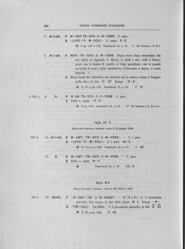 Corpus nummorum italicorum : primo tentativo di un catalogo generale delle monete medievali e moderne coniate in Italia o da italiani in altri paesi , 7: Veneto : Venezia. 1, Dalle origini a Marino Grimani