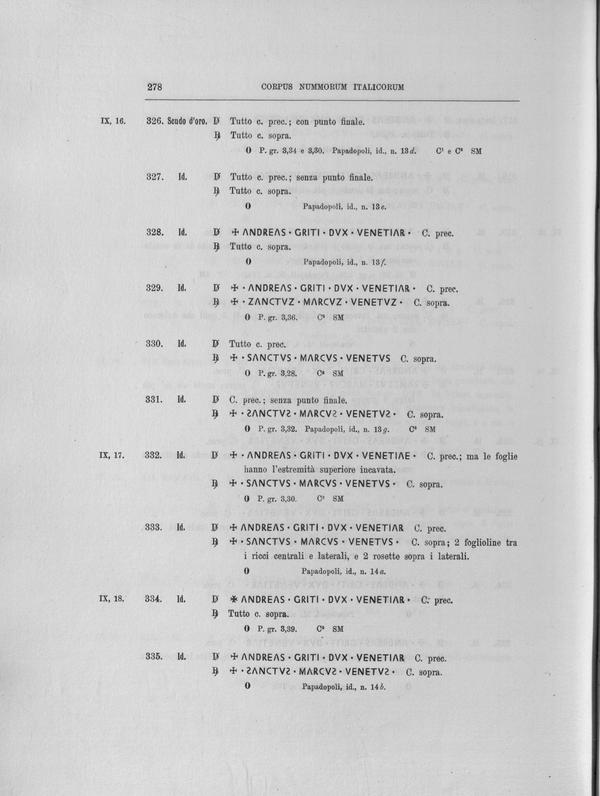 Corpus nummorum italicorum : primo tentativo di un catalogo generale delle monete medievali e moderne coniate in Italia o da italiani in altri paesi , 7: Veneto : Venezia. 1, Dalle origini a Marino Grimani
