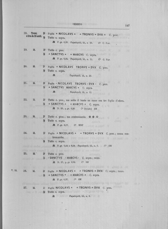 Corpus nummorum italicorum : primo tentativo di un catalogo generale delle monete medievali e moderne coniate in Italia o da italiani in altri paesi , 7: Veneto : Venezia. 1, Dalle origini a Marino Grimani