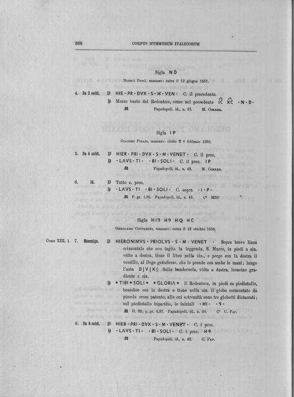 Corpus nummorum italicorum : primo tentativo di un catalogo generale delle monete medievali e moderne coniate in Italia o da italiani in altri paesi , 7: Veneto : Venezia. 1, Dalle origini a Marino Grimani