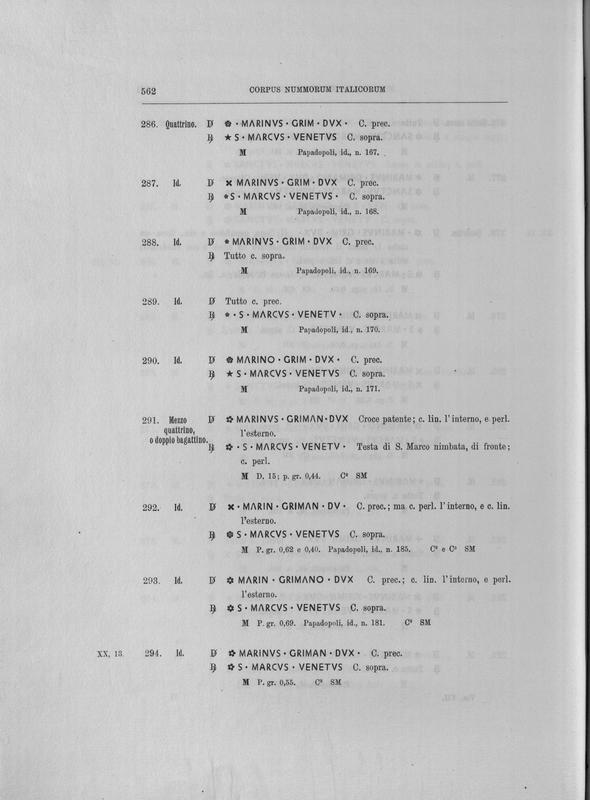 Corpus nummorum italicorum : primo tentativo di un catalogo generale delle monete medievali e moderne coniate in Italia o da italiani in altri paesi , 7: Veneto : Venezia. 1, Dalle origini a Marino Grimani