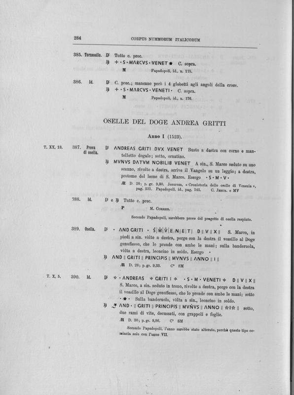 Corpus nummorum italicorum : primo tentativo di un catalogo generale delle monete medievali e moderne coniate in Italia o da italiani in altri paesi , 7: Veneto : Venezia. 1, Dalle origini a Marino Grimani