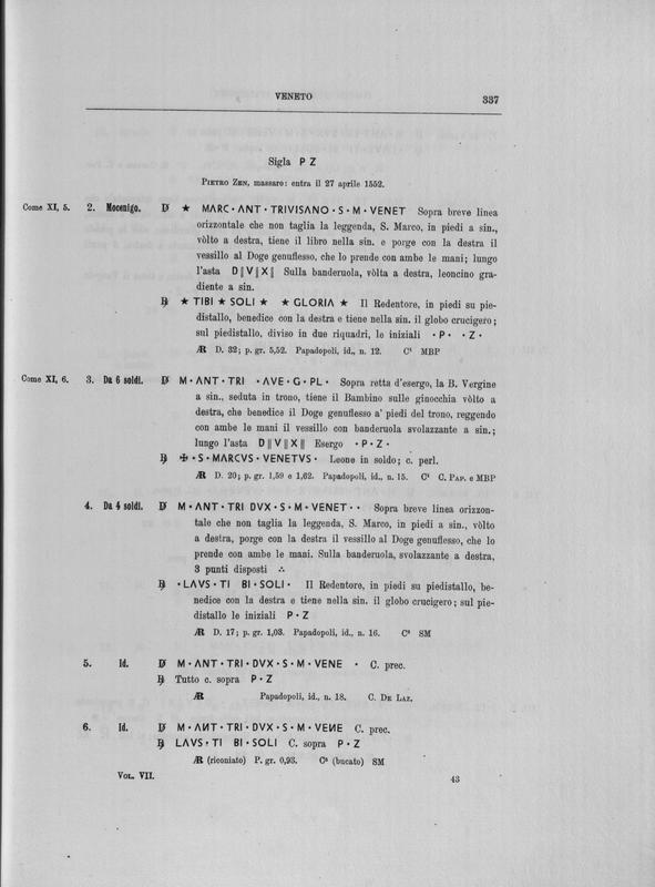 Corpus nummorum italicorum : primo tentativo di un catalogo generale delle monete medievali e moderne coniate in Italia o da italiani in altri paesi , 7: Veneto : Venezia. 1, Dalle origini a Marino Grimani
