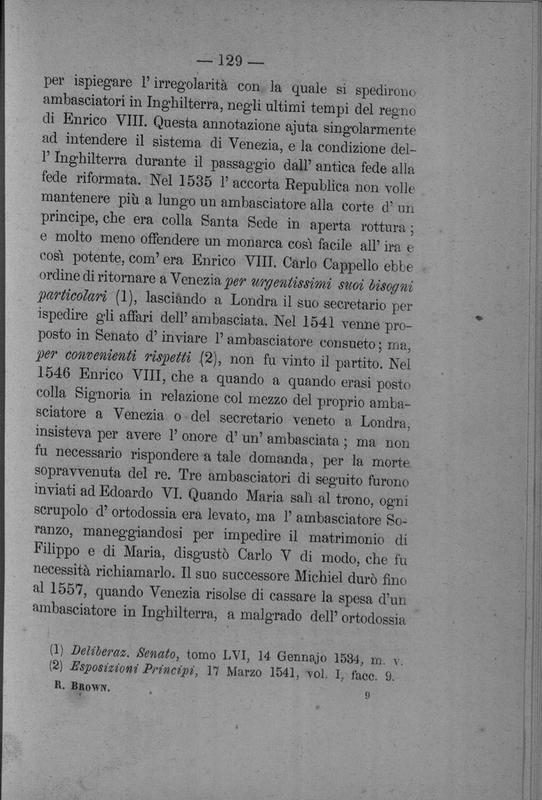 L'archivio di Venezia con riguardo speciale alla storia inglese . saggio di Rawdon Brown ; con una nota preliminare del conte Agostino Sagredo