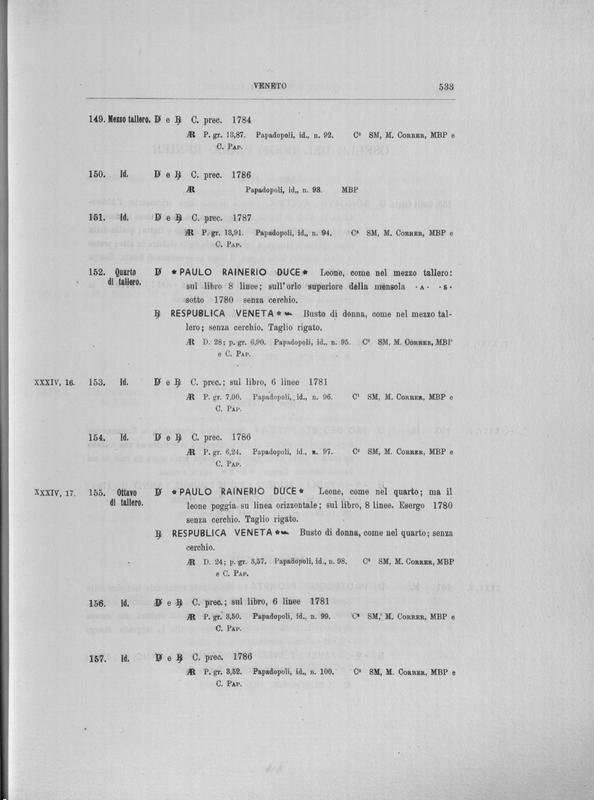 Corpus nummorum italicorum : primo tentativo di un catalogo generale delle monete medievali e moderne coniate in Italia o da italiani in altri paesi , 8: Veneto : Venezia. 2, Da Leonardo Dona' alla chiusura della zecca