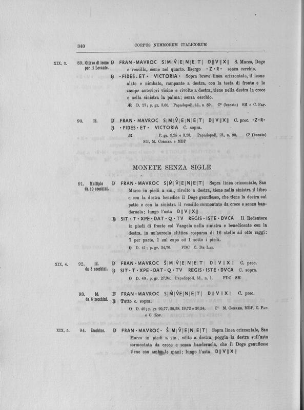 Corpus nummorum italicorum : primo tentativo di un catalogo generale delle monete medievali e moderne coniate in Italia o da italiani in altri paesi , 8: Veneto : Venezia. 2, Da Leonardo Dona' alla chiusura della zecca