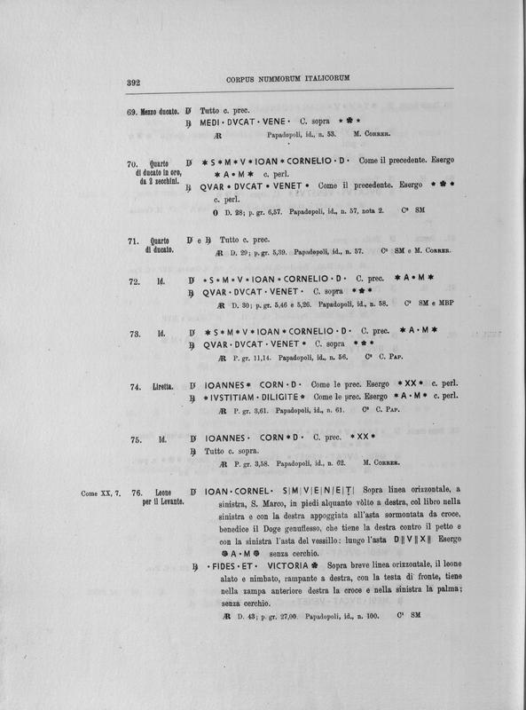 Corpus nummorum italicorum : primo tentativo di un catalogo generale delle monete medievali e moderne coniate in Italia o da italiani in altri paesi , 8: Veneto : Venezia. 2, Da Leonardo Dona' alla chiusura della zecca