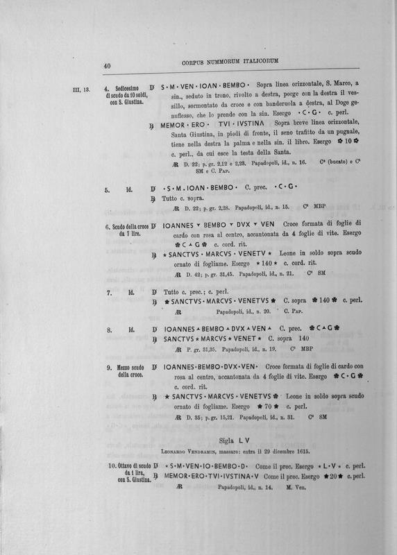 Corpus nummorum italicorum : primo tentativo di un catalogo generale delle monete medievali e moderne coniate in Italia o da italiani in altri paesi , 8: Veneto : Venezia. 2, Da Leonardo Dona' alla chiusura della zecca
