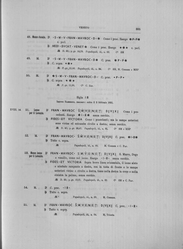 Corpus nummorum italicorum : primo tentativo di un catalogo generale delle monete medievali e moderne coniate in Italia o da italiani in altri paesi , 8: Veneto : Venezia. 2, Da Leonardo Dona' alla chiusura della zecca
