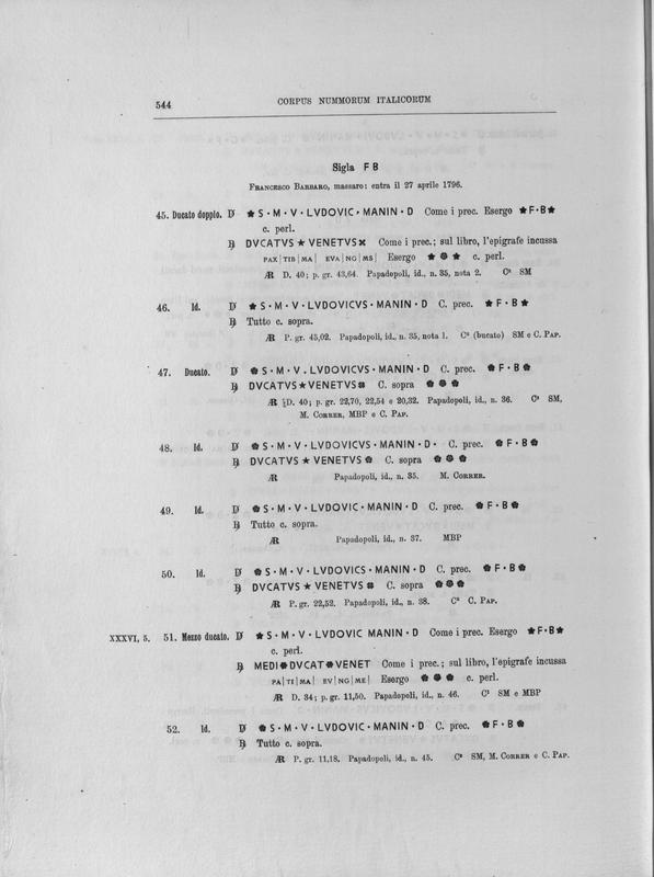 Corpus nummorum italicorum : primo tentativo di un catalogo generale delle monete medievali e moderne coniate in Italia o da italiani in altri paesi , 8: Veneto : Venezia. 2, Da Leonardo Dona' alla chiusura della zecca
