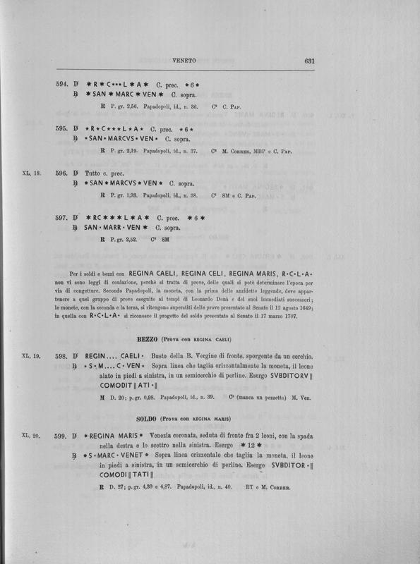 Corpus nummorum italicorum : primo tentativo di un catalogo generale delle monete medievali e moderne coniate in Italia o da italiani in altri paesi , 8: Veneto : Venezia. 2, Da Leonardo Dona' alla chiusura della zecca